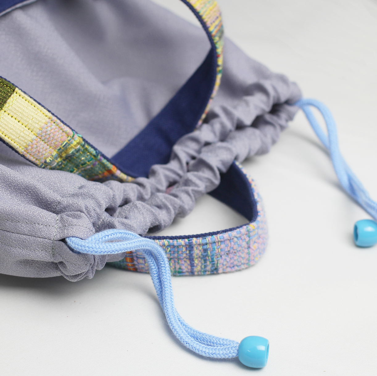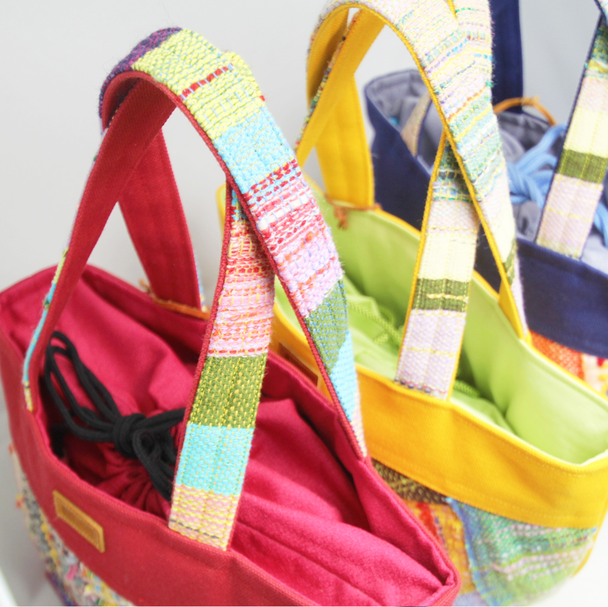 丈夫で軽い帆布生地と、さをり織りのコラボ製品です。
