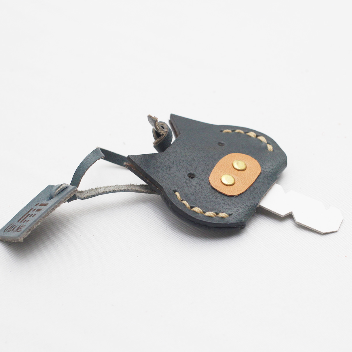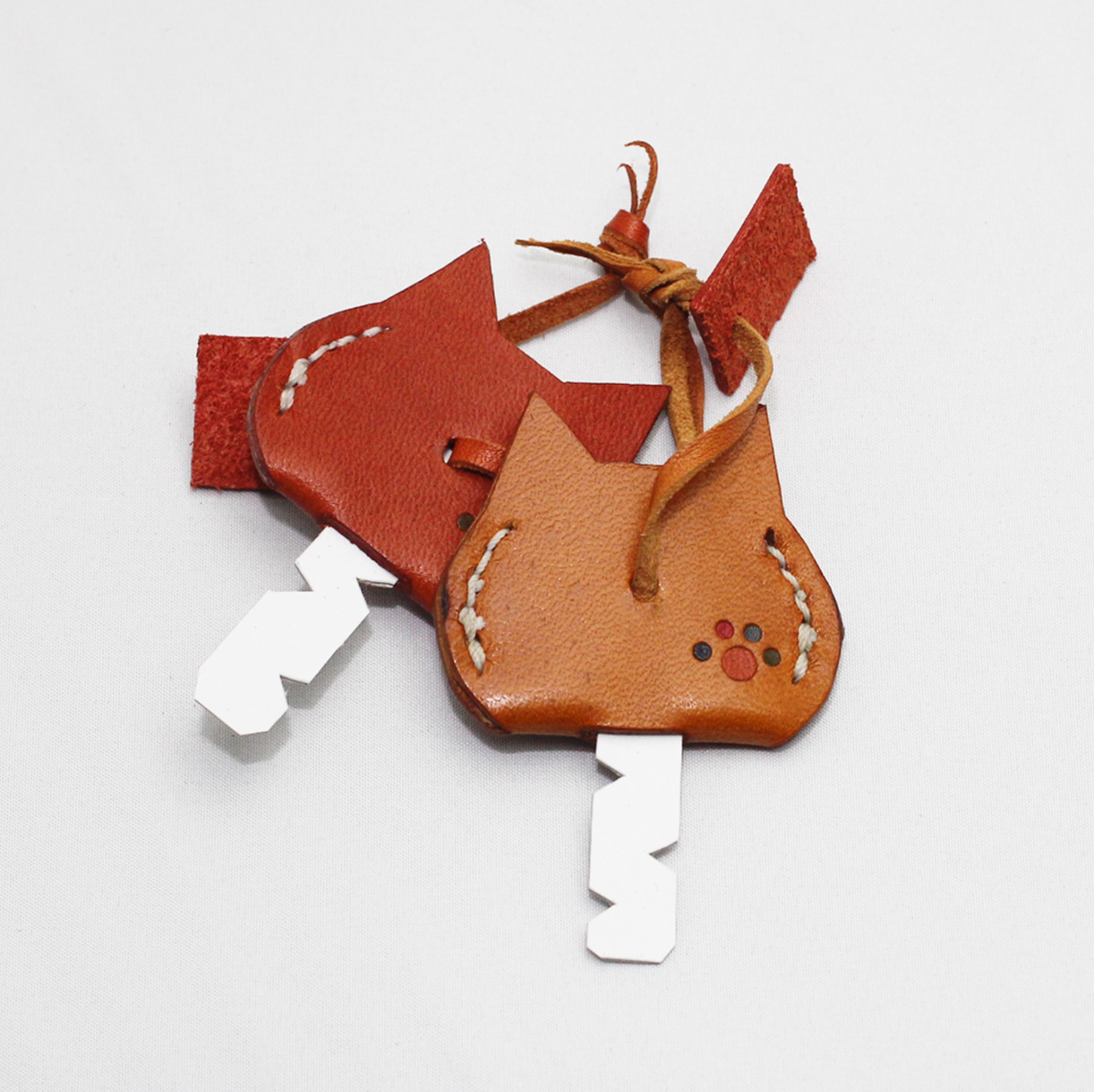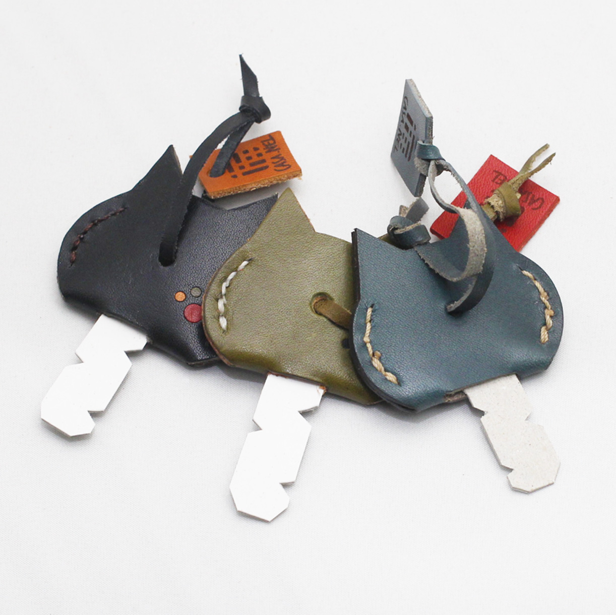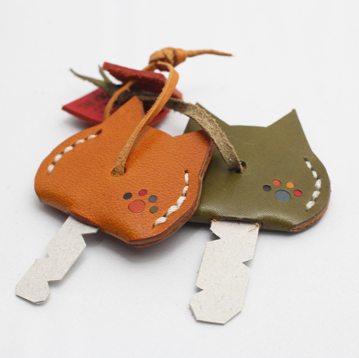 人気のブタとねこの顔型がモチーフになっています。人気№1製品です。 革の色は黄茶、紺、緑、オレンジ、赤、黒の5色からお選びいただけます。
